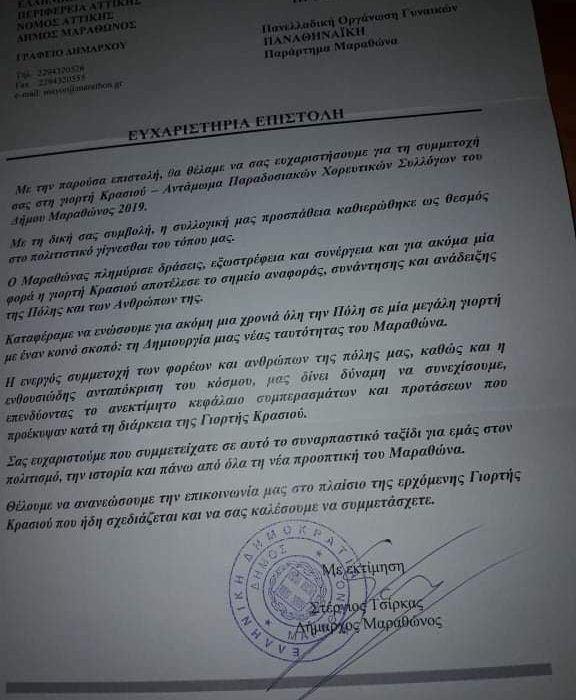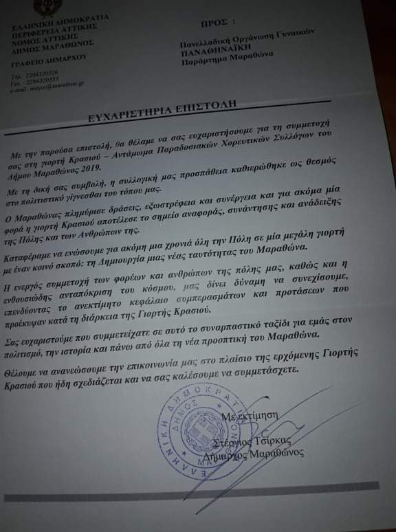 Ευχαριστήρια επιστολή ,από τον Δήμαρχο Μαραθώνα κ. Στέργιο Τσίρκα 08/03/2020 Pin It Previous Post ΕΛΛΗΝΙΚΗ ΔΗΜΟΚΡΑΤΙΑ ΥΠΟΥΡΓΕΙΟ ΥΓΕΙΑΣ In Αξίζει να διαβάσετε ΕΛΛΗΝΙΚΗ ΔΗΜΟΚΡΑΤΙΑ ΥΠΟΥΡΓΕΙΟ ΥΓΕΙΑΣ View Post Next Post 8 ΜΑΡΤΙΟΥ ΠΑΓΚΟΣΜΙΑ ΗΜΕΡΑ ΤΗΣ… In Άρθρα 8 ΜΑΡΤΙΟΥ ΠΑΓΚΟΣΜΙΑ ΗΜΕΡΑ ΤΗΣ ΓΥΝΑΙΚΑΣ View Post
