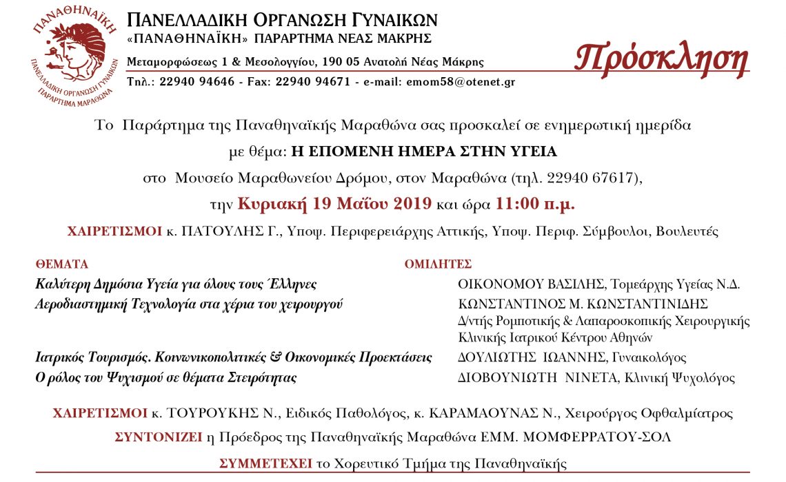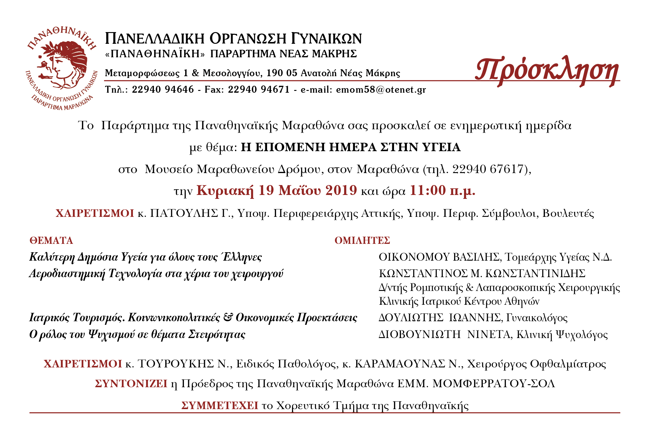 Το Παράστημα της Παναθηναϊκής Μαραθώνα σας προσκαλεί σε ενημερωτική ημερίδα με θέμα: