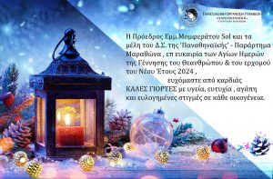 Ευχές!!! 20/12/2023 Previous Post Tμήμα Χειροτεχνίας & Πλεξίματος In Ενδιαφέροντα Tμήμα Χειροτεχνίας & Πλεξίματος View Post Next Post Έγκριση νέου Διοικητικού Συμβουλίου του… In Άρθρα Έγκριση νέου Διοικητικού Συμβουλίου του Παραρτήματος Μαραθώνα View Post